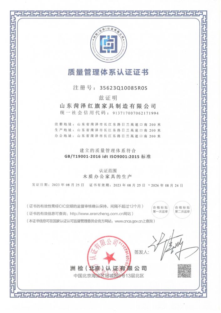 質(zhì)量管理體系認(rèn)證證書